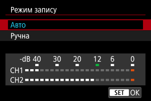 Рівень запису звуку встановлюється автоматично. Керування рівнем запису здійснюватиметься автоматично залежно від рівня гучності.