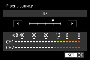Рівень запису звуку можна регулювати. Відрегулюйте рівень у меню [Рівень запису].