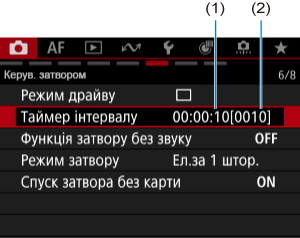 За допомогою таймера інтервалу можна встановити інтервал зйомки та кількість знімків, щоб камера знімала окремі кадри згідно із заданим інтервалом і завершила зйомку після досягнення необхідної кількості знімків.