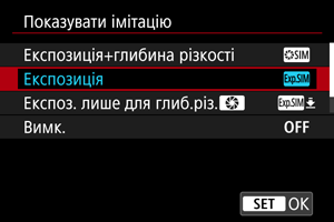 Якщо використовується функція імітації відображення, відображувані яскравість зображень і глибина різкості точніше відповідають фактичній яскравості (експозиції) знімків.
