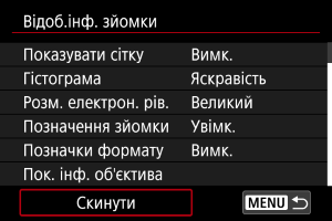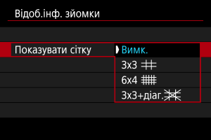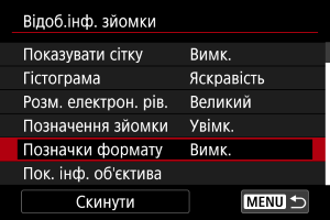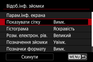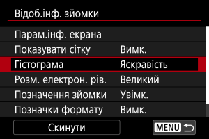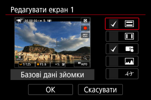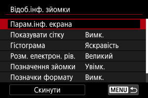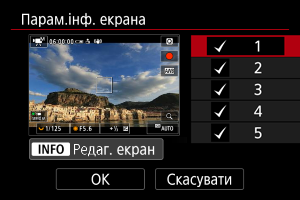 , щоб вибрати інформаційні екрани, які відображатимуться на дисплеї камери.
