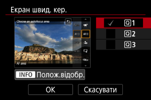 ]), ви можете налаштувати екран настроюваного швидкого керування за допомогою меню [
