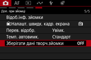 Якщо зберегти параметри творчої зйомки, що використовувалися в режимі [], то не буде потрібно знову вибирати ефект для наступної зйомки.
