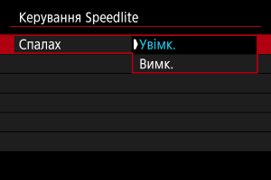 : Керування Speedlite]. Це значення слід задавати безпосередньо на спалаху Speedlite.