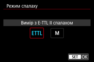 - [Вимір з E-TTL II спалахом] — це стандартний автоматичний режим для спалахів Speedlite серії EL/EX.