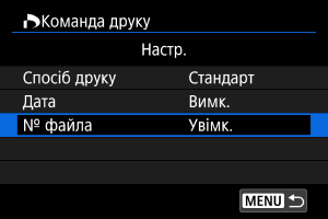 - Налаштуйте параметри [Спосіб друку], [Дата] і [№ файла].