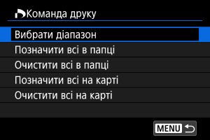 Виберіть [Позначити всі в папці] і виберіть потрібну папку. Буде визначено команду друку, яка включає по одному примірнику всіх зображень у цій папці.