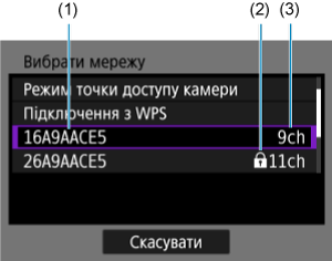 - (2) Піктограма безпеки (тільки для зашифрованих точок доступу)