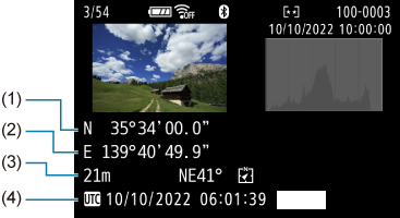 Інформацію про розташування, яка додається до знімків, можна перевірити на екрані параметрів зйомки ().