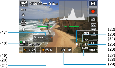 - (29) Індикатор рівня експозиції (рівні вимірювання)