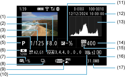 - Для зображень, знятих під час зйомки у форматах RAW + JPEG/HEIF, указує розмір файлів RAW.