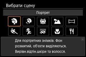 Використовуйте режим [] (Портрет), щоб розмити тло і виділити зображення людини. Окрім того, у цьому режимі тони шкіри й волосся виглядають м’якшими.