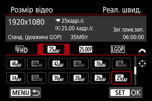 - Установлена кадрова частота записування може оновитися, якщо змінити значення параметра [