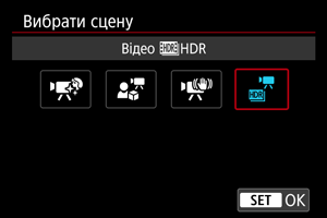 (для відео), можна вибрати сцену чи режим, що найкраще підходять для умов зйомки.