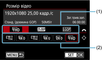 Зауважте, що кадрова частота автоматично оновлюється відповідно до налаштування параметра [: Частота системи] ().
