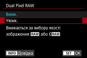 - Буде знято зображення у форматі RAW з даними Dual Pixel (зображення Dual Pixel RAW).