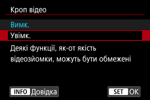 Коли використовуються об’єктиви RF або EF, відео можна обрізати навколо центра області зображення, як у разі використання телеоб’єктива.