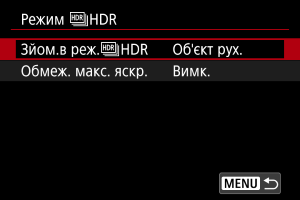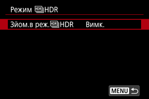 - Щоб виконувати звичайну зйомку, без використання режиму HDR, виберіть [Вимк.].