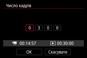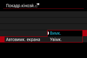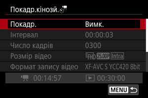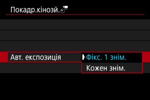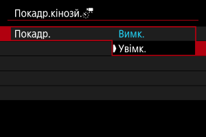 - Щоб скасувати покадрове записування відео, установіть для параметра [Покадр.] значення [Вимк.].