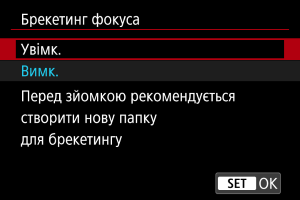: Брекетинг фокуса] повертається до значення [Вимк.], якщо перемикач живлення встановлено в положення