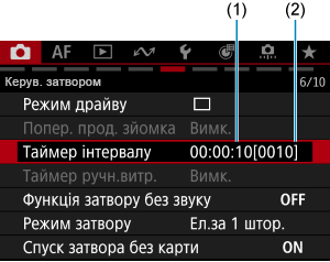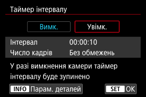 - Щоб припинити зйомку з таймером інтервалу, виберіть [Вимк.] або встановіть перемикач живлення в положення