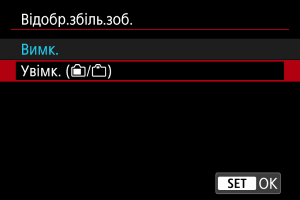: Відобр.збіль.зоб.], для якого встановлено значення [Увімк. (