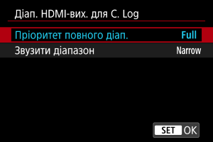 Ви можете вибрати вихідний діапазон відеосигналів, що виводяться через підключення HDMI.