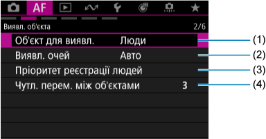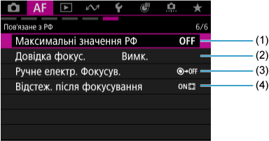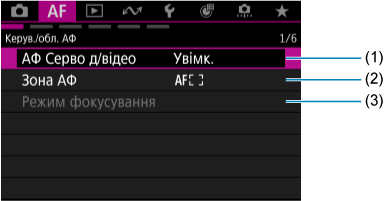 - Параметр [Режим фокусування] відображається, коли використовуються об’єктиви без перемикача режимів фокусування.