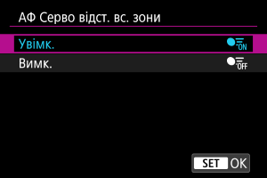 : АФ Серво відст. вс. зони] установлено значення [Вимк.], а для [