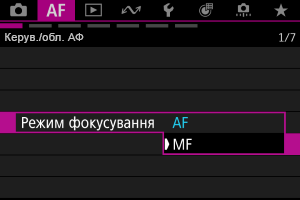 : Режим фокусування] значення [MF].
