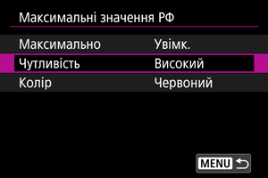- Виділення для ручного фокусування може бути важко побачити за високої чутливості ISO, особливо коли встановлено розширення діапазону ISO. За необхідності зменште чутливість ISO або встановіть для параметра [Максимально] значення [Вимк.].