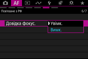 Якщо встановити для параметра [: Довідка фокус.] значення [Увімк.], відображатимуться візуальні підказки, що позначатимуть напрямок і потрібний ступінь корекції.