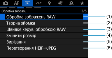 - (3) Швидке керув. обробкою RAW