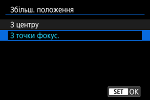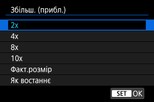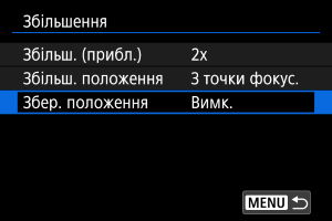 Положення, встановлене в [Збільш. положення], використовується під час відображення наступних зображень у збільшеному вигляді.