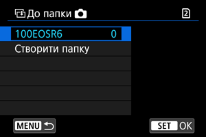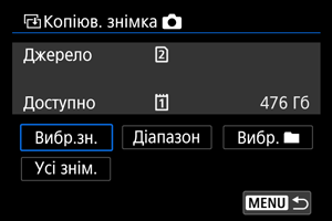 - Якщо вибрано параметр [Вибр.зн.], зображення в кількох папках не вдасться скопіювати одночасно. Виберіть зображення для копіювання з однієї папки за один раз.