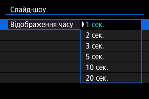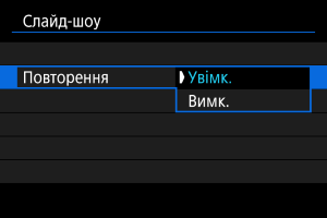 - Задайте параметри [Відображення часу] і [Повторення] (повторне відтворення) для фотографій.
