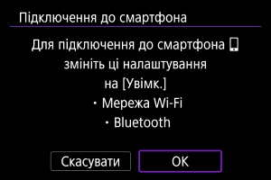 - Якщо для пунктів [Параметри Wi-Fi] та [Налашт. Bluetooth] уже встановлено [Увімк.], цей екран не відображається.