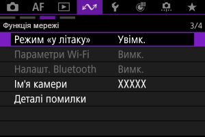 Якщо ви не хочете, щоб вимкнена камера залишалася підключеною через Wi-Fi або Bluetooth, установіть для параметра [: Режим «у літаку»] значення [Увімк.] або для параметра [