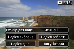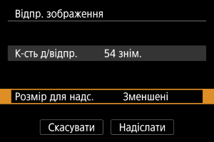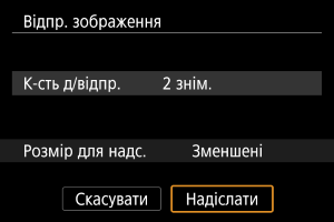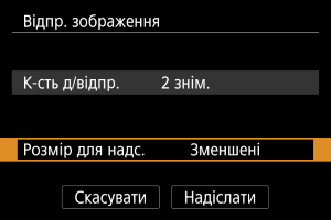 - У разі надсилання кількох зображень можна також за потреби перед надсиланням змінити параметр [Розмір для надс.] на екрані підтвердження.