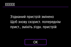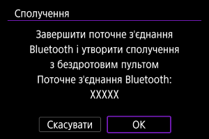 - Якщо камеру вже сполучено з іншим пристроєм, з’явиться повідомлення. Щоб завершити поточне підключення Bluetooth, виберіть [ОК].