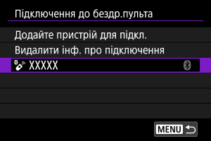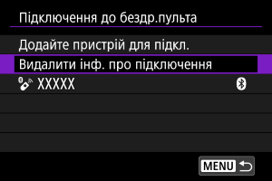 Можна видалити інформацію про підключення. Ця дія скасовує сполучення з будь-якими підключеними бездротовими пристроями дистанційного керування.