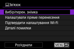 - Під час передавання зображень деякі пункти меню недоступні.