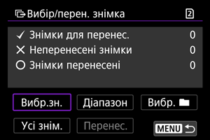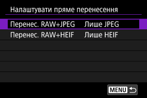 Для зображень у форматі RAW+JPEG або RAW+HEIF можна вказати зображення для перенесення.