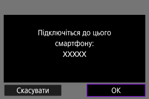 - Якщо програму Camera Connect не встановлено, відскануйте QR-код на екрані за допомогою смартфона, перейдіть у магазин Google Play або App Store, щоб установити Camera Connect, а потім натисніть кнопку