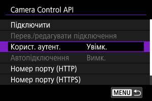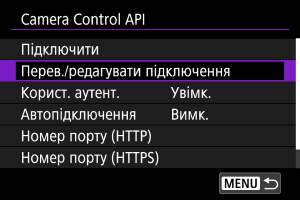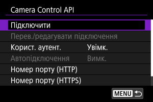Використання Camera Control API (CCAPI)