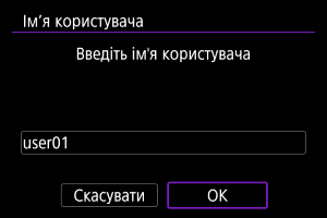 - Введіть ім’я камери, після того як на її екрані з’явиться повідомлення [Зареєструйте ім'я для ідентифікації цієї камери. Це ім'я використовуватиметься для з'єднань Wi-Fi і Bluetooth.].