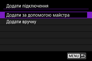 - Щоб налаштувати дані підключення, виберіть [Додати вручну].