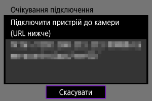 - Коли на камери з’явиться показаний вище екран, скористайтеся смартфоном, комп’ютером або іншим пристроєм, щоб перейти за вказаною URL-адресою з програми, розробленої для керування камерою.