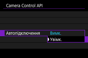 Якщо вибрати значення [Увімк.], підключення автоматично встановлюватиметься щоразу, коли камера запускатиметься після вимкнення.