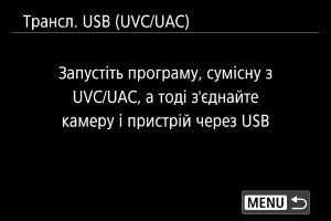Виберіть цей параметр, якщо збираєтесь використовувати UVC/UAC-сумісні програми після підключення через USB до комп’ютера чи іншого пристрою.